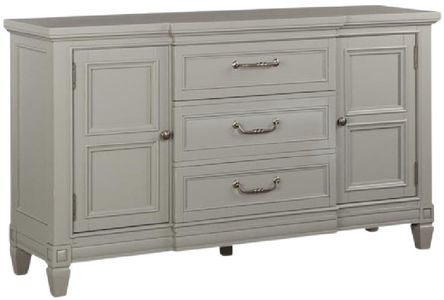 Le buffet Glenbrook présente une finition en galets lisses sur placage de bouleau et bois massif. Avec deux portes latérales en bois (chacune dotée d'une étagère en bois réglable), trois tiroirs centraux dont un tiroir supérieur doublé de feutre, des glissières à roulement à billes latérales, une construction à caisson scellé, des pieds de soutien avec niveleurs et des ferrures en argent terni, il allie rangement fonctionnel et style intemporel.Read More