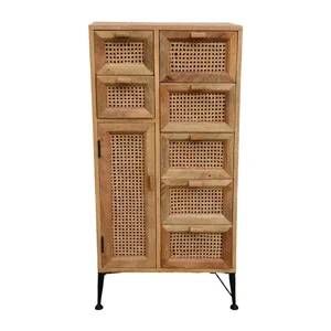 Rangement Mandovi 22” x 12” x 44”H7 tiroirs bois manguier naturel avec rotin et pattes de métal noirRead More